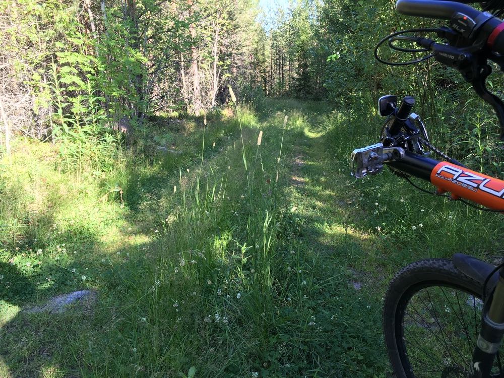Tällä kertaa ajoin junaradan vierellä kulkevaa huoltotietä. Se oli välillä vähän haastavaa, kun se loppui välillä kesken mm. ojan tai joen kohdalla. Yhdestä kohdasta huoltotietä oli purettu jo pois, eli joutui ajamaan pellon reunaa. Kivasti löytyi taas uusia reittejä ja vähän vaihteua tuohon työmatkaan.
