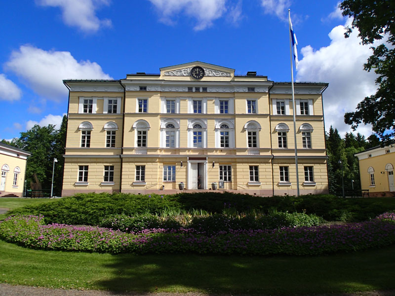 Lounasta Vuojoen kartanossa. Komea Engelin suunnittelema ja hiljattain remontoitu lukaali. Kyllä kelpasi monipuolinen lounasbuffet ja vesikin nautittiin jalallisesta kristallilasista. Ihanaa kun kartanoita vielä ylläpidetään. Eikä trikoopellejä klossikengissä ajeta ulos :lol: