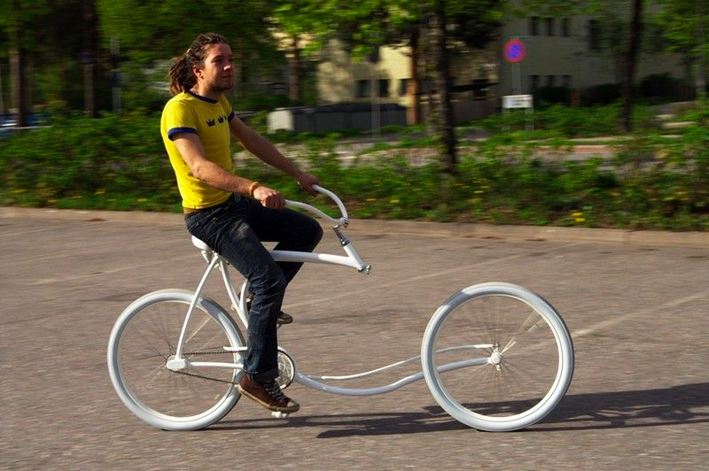 Tuo on niin takapainoinen, että pitoa on takarenkaalla lujasti. Jos akseli kestäiskin, niin tuo 32mm runkoputki ei kestä jarruttamista ja jos se sattuisi Ihmeen kaupalla kestämäänkin, niin joustoliike olisi niin suuri että ohjaus venkoilee mihin sattuu ja nurin mennään. Tuohan on vaan taideteos, millä 47 kiloinen taiteilija on kerran rullannut kuvaa varten.