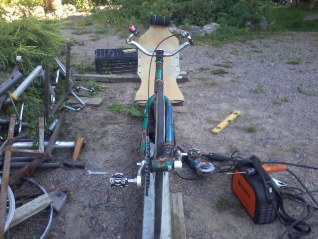 Aika levynä tuolla nyt ajetaan. Epäilen ettet saa häävisti voimaa polkimiin jos tosissaan pyörität... seuraavaksi työlistalle tulee olkapäätuet veikkaisin.