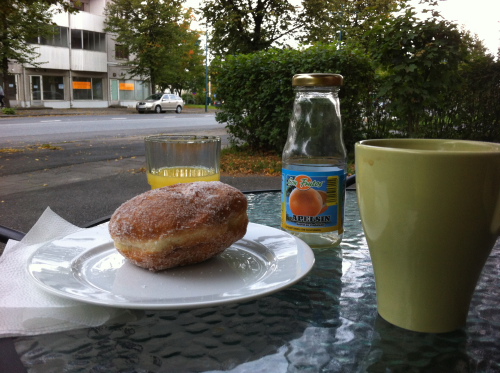 Taukoja pitelin aina kun vain vähänkin mieli teki, juomataukoja 5 - 10 km välein, pientä napostelua 1 - 2 h välein. Tauot mukaan laskettuna olin liikkeellä 8 - 10 tuntia, puskamajoitukseen vetäydyin vasta lähellä auringonlaskun aikaa. Munkkikahvittelin yleensä kerran päivässä ja aterioin joskus keskellä päivää, mutta useinmiten vasta päivän pyöräilyetapin päätyttyä. Jos lounasaikaan lankesin seisovan pöydän ääreen, niin söin kuitenkin maltillisesti enkä ahtanut itseäni täyteen. Ylipäätään ruokahalu ei reissussa ollessa ollut kovinkaan suuri, ei maittanut suklaa eikä muukaan mitä kotisohvalla loikoillessa kaipaa. :mrgreen: