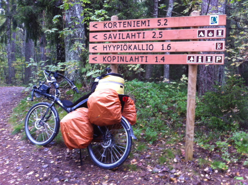 Reissun kokonaispituudeksi tuli 1012 km, eli tavoite täyttyi. Varatut lepopäivät jäivät käyttämättä, sillä en niitä tuntenut kaipaavani vaikka koipeni eivät kovin nuoria enää olekaan 8). Parasta lepoa tuntui olevan rento nojapyörässä istuskelu, maisemien katselu ja kevyt polkemistahti. :D