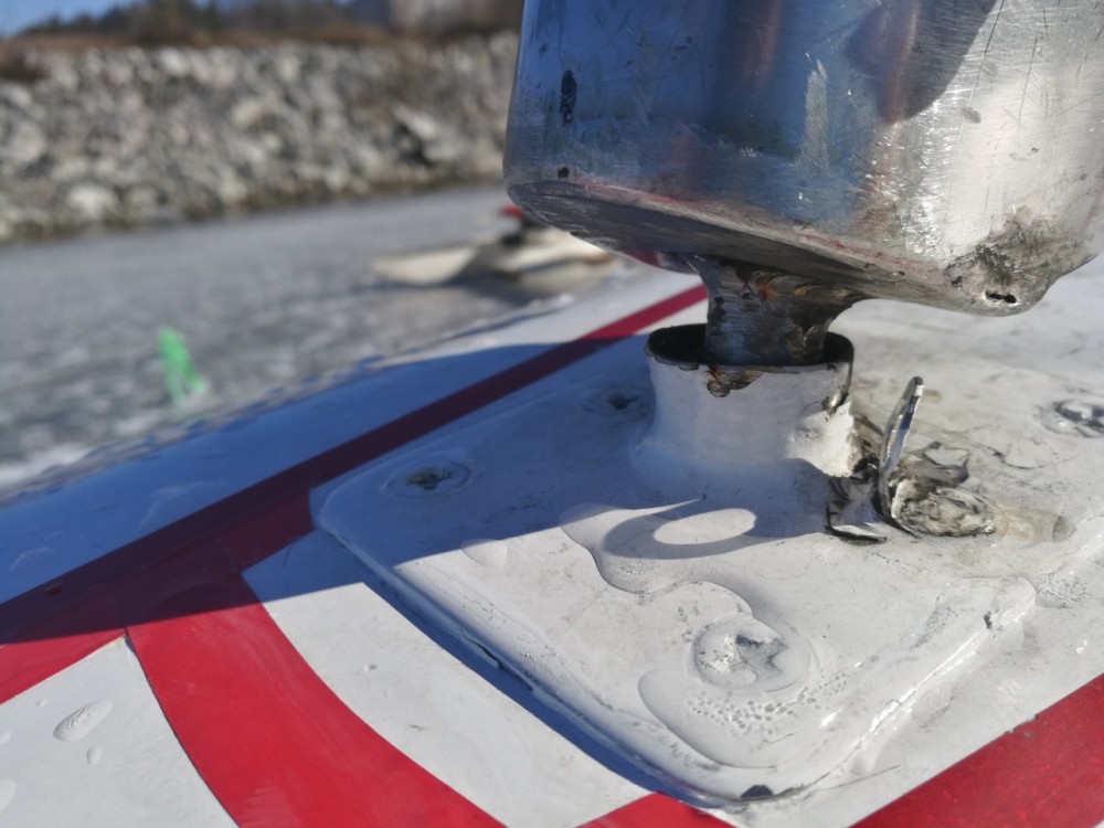 Etuluistimen emäputken vois hitsata putkiklemmarin kylkeen, sen etäisyyttä vois sitten säädellä kunnes löytyy ihanne paikka. Samoin maston jalka putkiklemmarilla liikuteltava, saattaa olla, ett Punakettuun tekemäni sopis Optarin mastolle. Jos haluu vaihtaa takilaa, voi tehdä sille sopivan jalan.