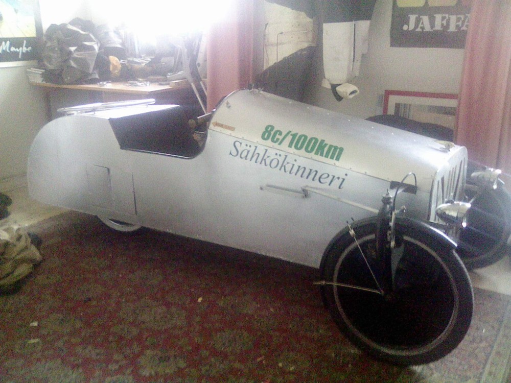 Sähkökinneri on nyt valmis kevääseen. Hopeanuoli. Lihasvetopuoli toimii nyt hyvin yhdellä ketjurullalla. Ketju pysyy sillä paremmin kun ketjun kulma yli rattaan on jyrkempi, ja painoa säästyi. Paino laski remontin myötä noin 4,5kg. Maalauksesta tuli lisää 200-300g, mutta toisaalta vaneria lähti pois kun siirsin penkkiä. Se painaa nyt keittiövaakan mukaan 51,7kg ilman akkuja, mikä on muuten täsmälleen saman verran kuin uusi Sinclair IRIS :wink: Se on 55kg akun kanssa. Moottorittomana paino olisi suht tasan 40kg. Tarrat eivät ole lopulliset, kunhan kokeilin. Istuinkorkeus on nyt 22cm ilman kuljettajaa, ennen 25cm. Alemmaksi ei pääse tai penkki tulee pohjan alapuolelle.