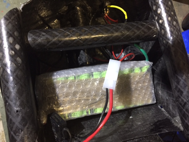 Akku on 12 ah 36V. Sen suhteen hassu tapahtuma, tilasin sen ebaystä Saksasta Panasonicin kennoilla. Akussa oli miinusnapojen pistehitsaus epäonnistunut ja kennoja oli irti. Valitin ja lähettivät heti uuden akun. Vanha piti palauttaa mutta eivät antaneet osoitetta joten tinailin ne irronneet paikat, balansoin kennot ja nyt on sitten kaksi akkua. Molemmat sopii istuimen alla olevaan laatikkoon jos tarvitsee tuplakapasiteettia. Akun suojana on 20A sulake, päävirtakytkin ja pyörän rungossa on kiinteä latauspistoke. Ostin netistä 10 kennon balanserin ja suojapiirin mutta se oli rikki ja meinasin katsoa pysyvätkö kennojen jännitteet tasassa. Kennot voin balansoida erillisellä laturilla jos ne menee epätasapainoon.