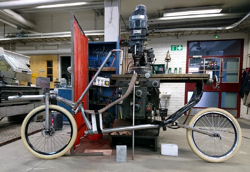Onko tarkoitus tehdä tuonne etupyörän taakse vaakasuoraan runkoputkeen työkalupiilo, kun olet tuon liitoksen tehnyt "pitkällä nurkalla". Sehän voisi olla ihan mainio paikka vaikka vähän pidemmällekin pumpulle, tai vaikka rautakangelle, jos sellaista tarvitsisi mukana. :D