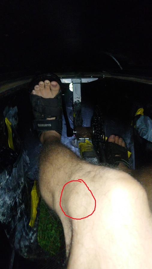 Minusta näytti siltä, että kamera on ollut enemmän vasemmalla kuin vasen reisi, joten kuva on viistossa vasemmalta oikealle eteen kuvattu. Kai. Se aiheuttaa arvaustarpeen reiden sijainnista polkimeen nähden, jos tuo on edes normaali jalan sijainti. Ettei polvea olisi siirretty oikealle, jotta kamera mahtuu kuvaamaan? Silloin ei voi kuvasta arvata polven ja peffan asentoa sen arvioimiseksi, onko jokin osa vartalosta vinossa kohdistamassa painetta polven ulkosyrjään. Oletan penkin oikealla puolella liikaa istumisen heti häiriköivän ympyröityä kohtaa. Myös vasemman polven oikealle siirto peffan ollessa keskitettynä saattaa rassata.