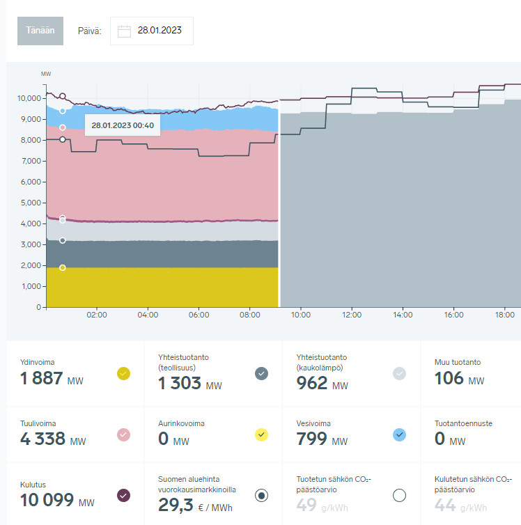 PW kirjoitti: ↑12 Helmi 2023, 12:45Sitä oon miettiny, ett ku meillä kolmen vuoden päästä on tuplasti nykyiseen tuulivoimakapasiteettia, ni miten pörssi alkaa toimia kun tuulisina päivinä tuulisähköstä saatas kaikki oma sähkönkulutus? Laitetaanko ydinvoimalat kiinni tuulisina päivinä vai saadaanko myytyä naapurimaihin nykyistä enemmän? Entä kuinka säätö tapahtuu jos vesivoima ei enään riitä? Vai kerkeekö vetyteknologia mukaan ja sitä tiputellaan kun tuulta on ylimäärin?