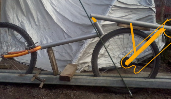 Aplari toi yhden pyöränraadon lisää, rakennusmateriaaliksi. Pilkoin sen ja sovittelin osia paikoilleen mutta tuntuu ett helpompi tehdä kokonaan alusta putkesta ja muusta tarveaineesta, vähemmän tarttee kompromisseja ![]()