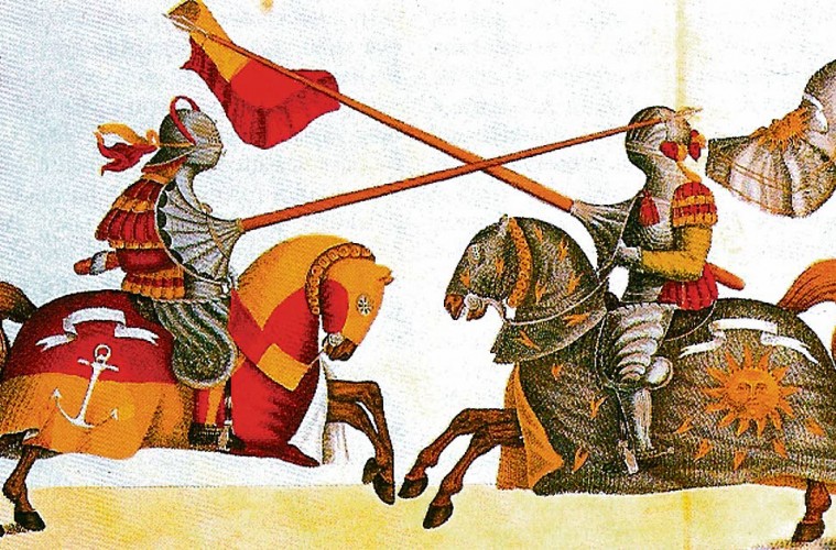 Pitäs olla ton tyyppinen turnajaisviiri, risteystä lähestyessä, näkyis ensin pensaan takaa ja voishan sillä tyrkkiä hitaampia syrjään