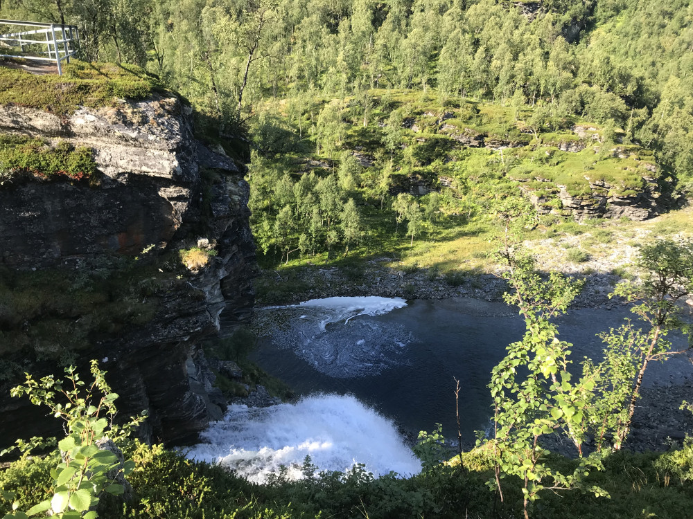 Sunnuntaiaamuna lähdin siis Kilpisjärveltä kohti Skibotnia. Tie Skibotniin oli vauhdikas ajettava, sillä se käy korkeimmillaan 550 metrissä ja laskeutuu sen jälkeen Jäämeren rantaan. Pysähdyin matkan varrella ihmettelemään Rovijoenkoskea.