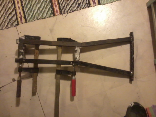 Välillä "harrastesorvin" ääreen. Uutta keulaa sovittelen, tuo putkenpätkä mallais uutta ohjausniveltä - kulma n. 60 astetta ja jättö n. -90mm. Ohjaus nivel tulis siis lähemmäs rengasta, penkin etureunaan.