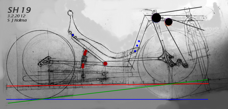 Gimpillä alkuperäisestä kuvasta mittasin kulman renkaan kosketuspintojen välille, samalla kulmalla viiva penkin pohjimmaisesta kohdasta keskiön kohdalle ja pystysuoraan ylös mittaus. Tästä suhde takapyörän halkaisijaan...
