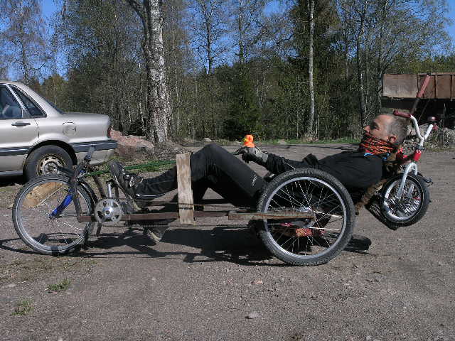 Eiköhän tään omankin kolmipyörän kuvan voi tähän ketjuun lisätä, kaivoin esille muistinvirkistämiseksi ku pyörä ei nyt oo kasassa. Itsekin hämmästyin miten kaukaa takana on kuskinpää :mrgreen: