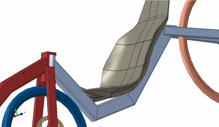 Nyte siinä olis osa eturunkoakin, tosin vielä puuttuu parit tuubit (täydentävät rakenteen kolmioksi). Tolla kombinaatiolla eturungon massa on 1.6 kg. Nivelestä ei vielä tarkempaa havaintoa ...eika parista muustakaan seikasta: ohjausgeometria, voimansiirto, jarrut yms ... eikä tuo haarukkaviritelmäkään varmaan ihan tuollasena konkretisoidu.