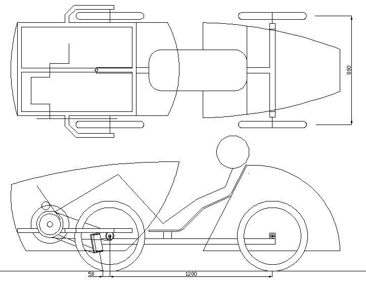 Jos tässä hyödyntäisi Luggarionin kiekkoja sellaisenaan, niin siinä olisi yksi Nexus 3 ja 2 x BMX kiekot. Vetävään renkaaseen tulisi jalkajarru sekä oikeaan- ja etukiekkoon levyjarru ja toispuolikiinnitys. Piirsin vaihtoehtoisen kiinnityksen oikean puolen kiekkoon.
