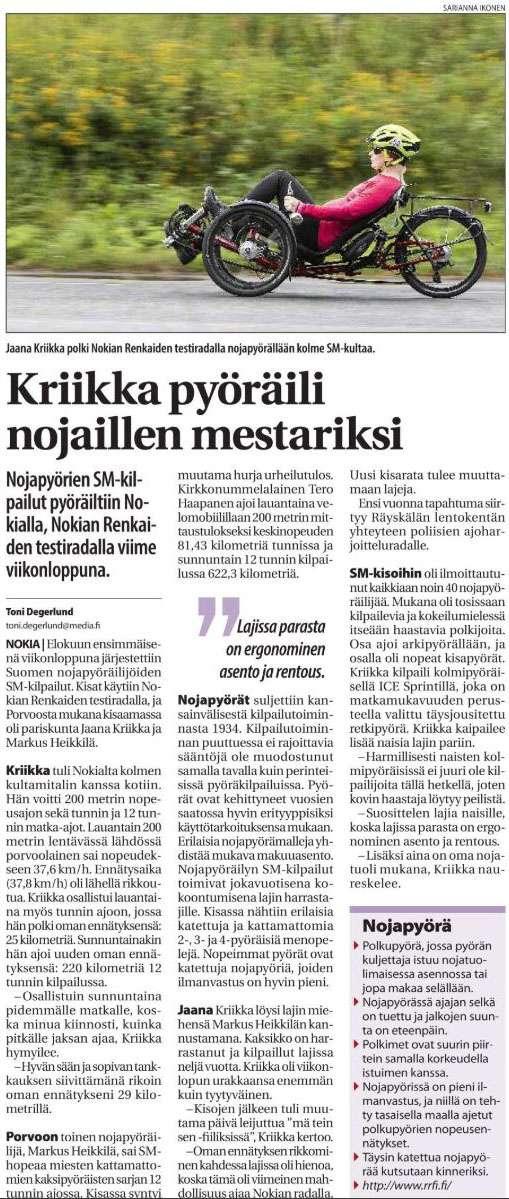 Tänään illalla tai huomenna illalla meikäläinen on äänessä Radio Suomessa. En tiedä onko joku etelä-Suomen paikallisjuttu vai kuuluuko koko valtakunnassa. Mutta toimittaja Petri Rinne soitteli ja juteltiin hetki polkupyörien talvirenkaista liittyen mun kitkat vs nastat videoon. Samalla juteltiin myös nojakeista ja kinnereistä.
