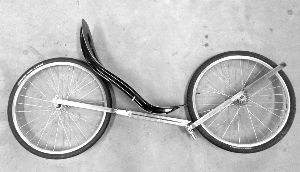 Kantsis pitää piirustukset mukana. Olis toi runkopalkki saanut olla hitusen pidempi = olis helpompi saada penkki sporttiseen kulmaan.Näyttäis tulevan kammet kovasti korkealle. Ei siinä että haittais ellei jyrkähkö sylikulma pudota "tehoja"... muuten oiken kompaktin näköinen laite. Mahtuuko nivuset oikeesti tuon etupyörän ja penkin väliin