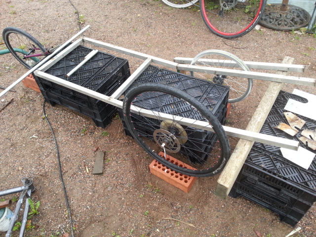 Keräilin uuden kinnerin runko ym materiaaleja. Nyt on menossa 30*30mm hitaammin ruostuvaa putkee. Perinteitä noudattaen, rungon leveys muodostus olemassa olevan kehikon leveydestä, laiskuutta, helppoutta ja kerrankin pyörässä pätkä suoraa osaa