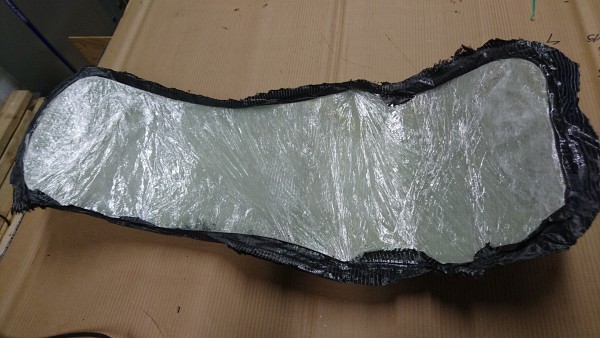 Koska ensimmäisen protopenkin pinnanlaadulla ei olisi niin väliä, niin työläs ja aikaavievä muottipinnan viimeistely päätettiin jättää myöhempään ajankohtaan. Siispä muotin päälle vain elmukelmua estämään epoksin tarttuminen.