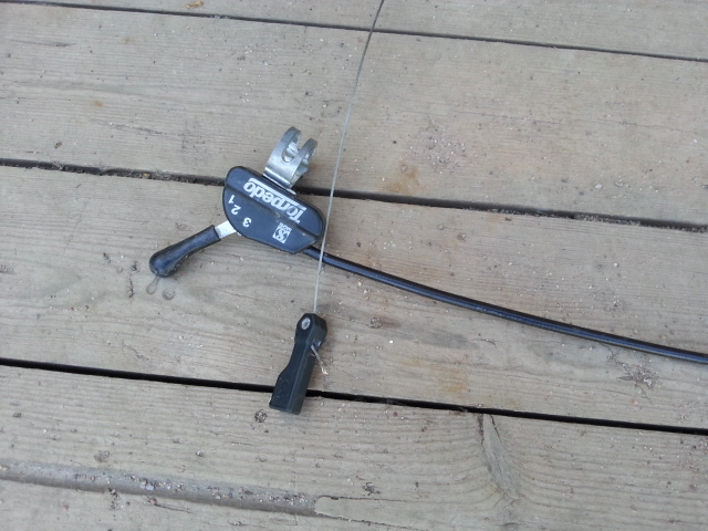 Joku tarkkasilmä huomaa, ett siinä navassa on kolme vaihdetta, tommonen ketjuvetonen - en taida omistaa tuohon osia, enkä muista millaset vehkeet siihen tarttee. Täytyy googlata ja ettii - vaihtaja tullee vaijerin toiseen päähän ja voihan sen kiinnittää penkin alle jos haluu (siellähän ne pyyttoneissa yleensä on).