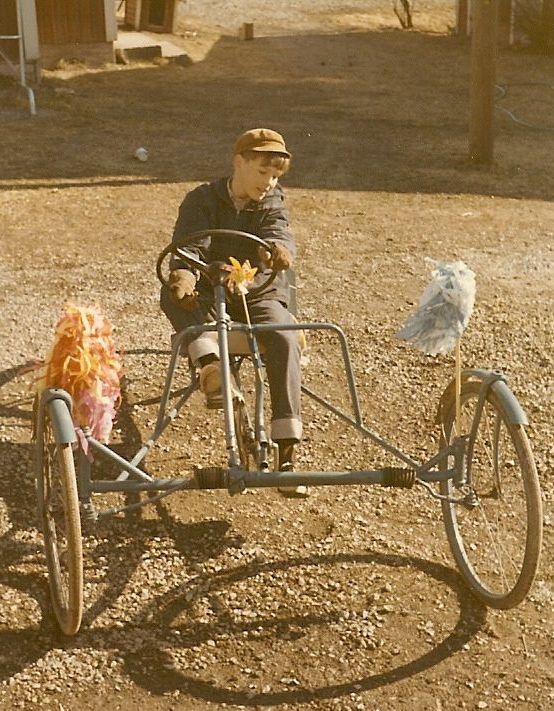 Tässä on kinnerin mallia 70-luvun alusta. Ei silloin tiedetty turbulensseista ym. Kulki niin lujaa kuin jaksoi. Kymmenet kerrat on naapurin kavereiden kanssa pelattu poliisia ja rosvoa. Muut fillarilla ja yksi kinnerillä. Vuoroja vaihdeltiin riitojen välttämiseksi. Ohjaus on muuten vanhan Morris Minin ohjauslaiteet. Ketjuvälitys ja penkin alla on etu / takaketjun välitys.