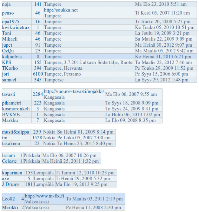 Tässä kaikki löytämäni foorumilaiset, joiden paikkakunnaksi on merkitty Tampere tai lähikunta.