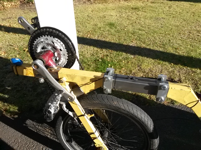 Nollasin jätön ja lyhensin kammet. Tuli huomattavasti mukavampi ajaa. Nyt voi ajaa hiljaa rennon letkeästi. Kallistusnivelelle en taidakaan tehdä mitään.