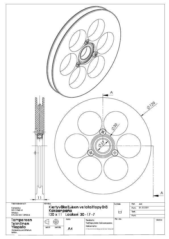 Muutama taittopyörä syntyi polven päällä vanhasta rullaluistimen pyörästä ja muutamaa jo olemassa olevaa pyörää sovellettiin vetopuolelle. Yhden vetopuolen rissan sorvailin löytyneestä nailonin kappaleesta..saa nöhdä miten kestää. Isossa vetopuolen taittopyörässä on oikein teräksinen ketjupyörä ja sitä tuli mun joskus koeajettuakin yhden 10tkm ilman onkelmia.