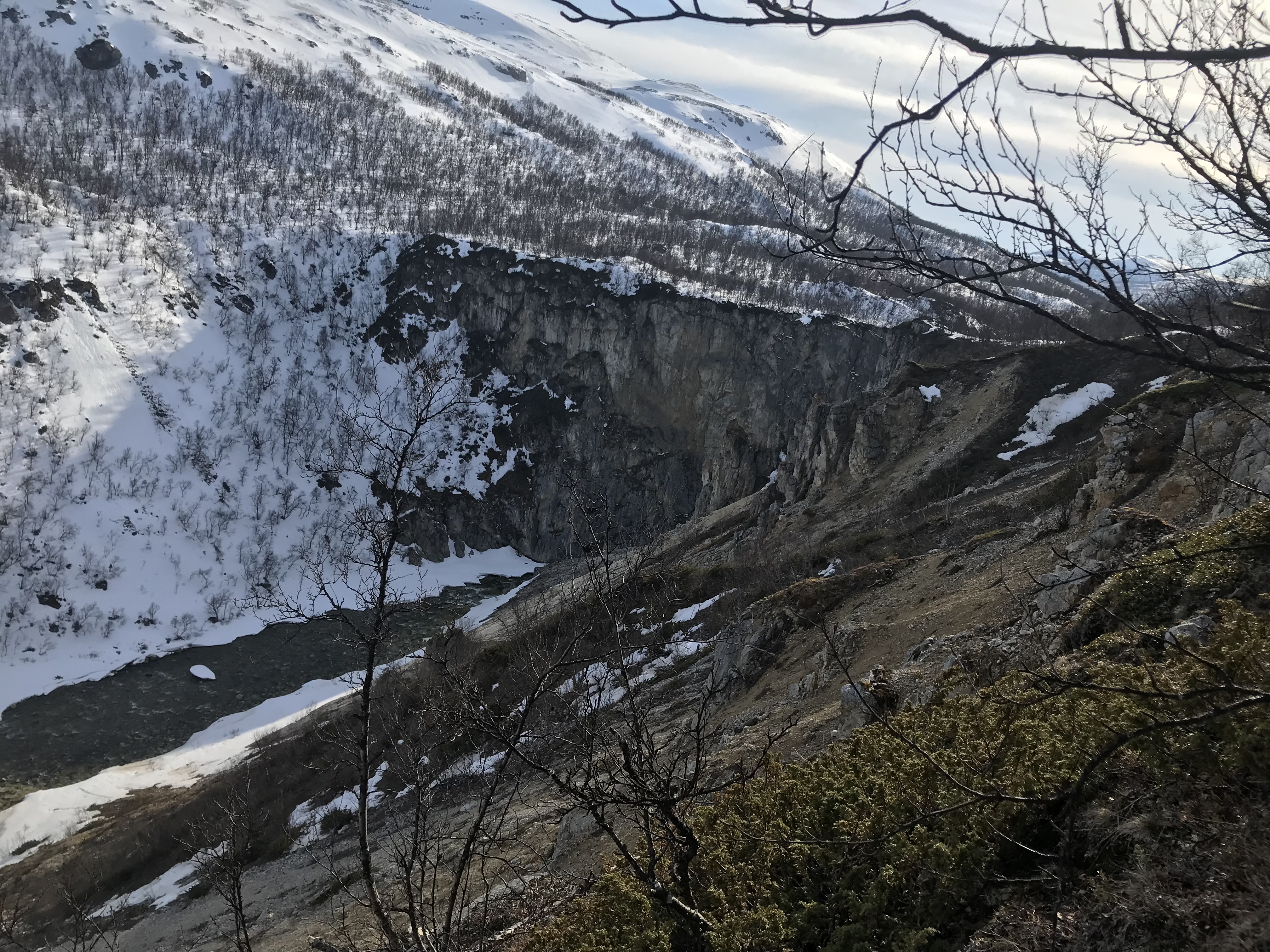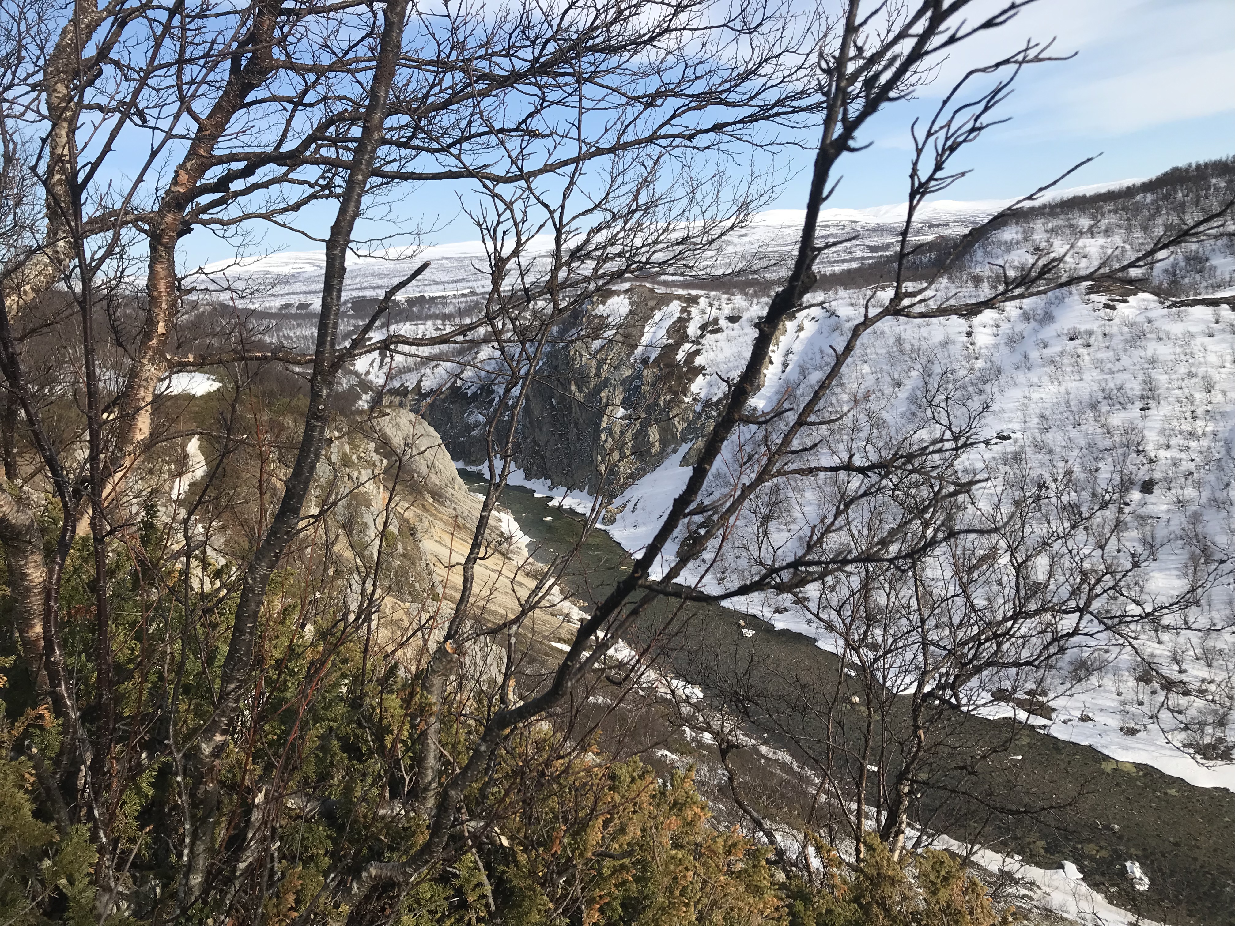 Seuraavaksi pysähdyn Silfarin kanjonille. Komea kanjoni se kieltämättä on. Harmi, kun lunta on vielä sen verran, ettei kunnolla pysty kävelemään kanjonin reunalla.