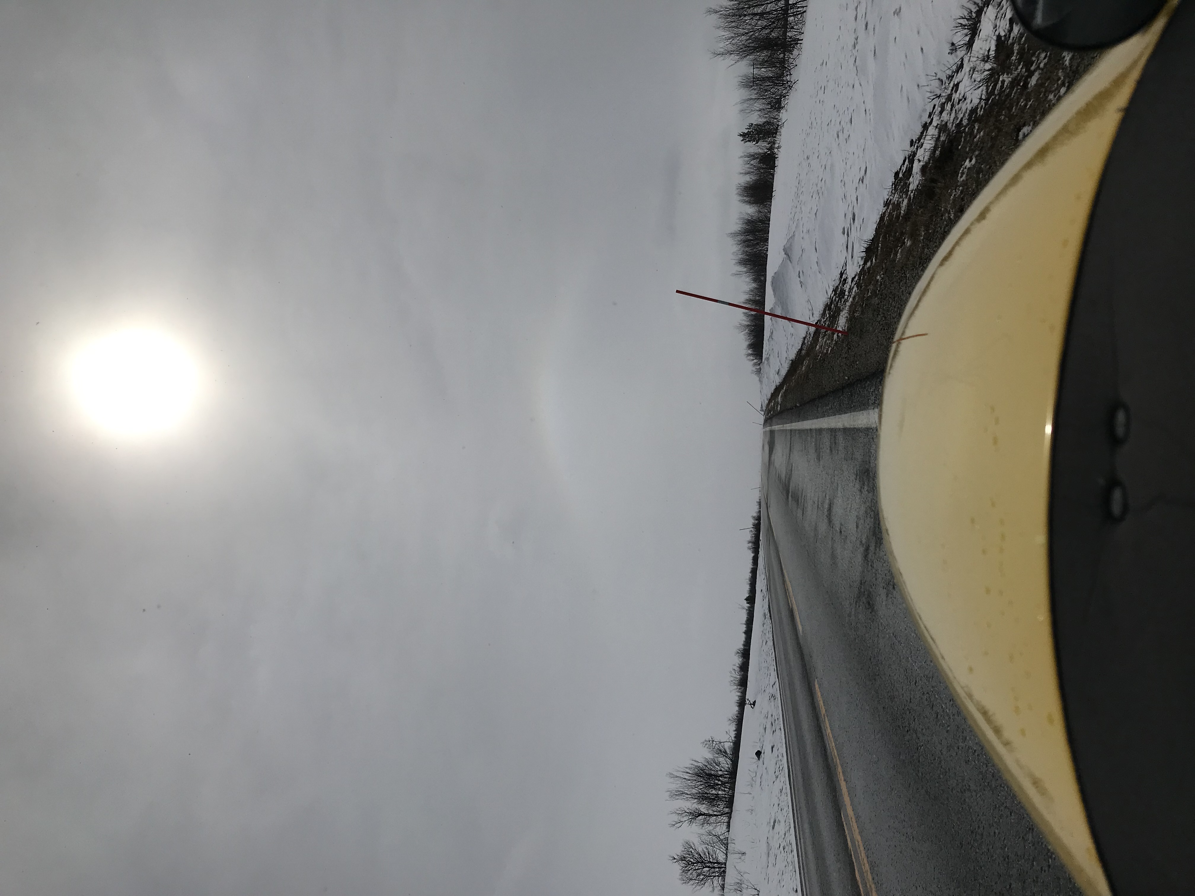 Kymmenkunta kilometriä ennen Kaarasjokea näen halon. Kyseessä on kuulemma 22 asteen allasivuava kaari. Kyseistä halomuotoa en muista kovin montaa kertaa nähneeni.