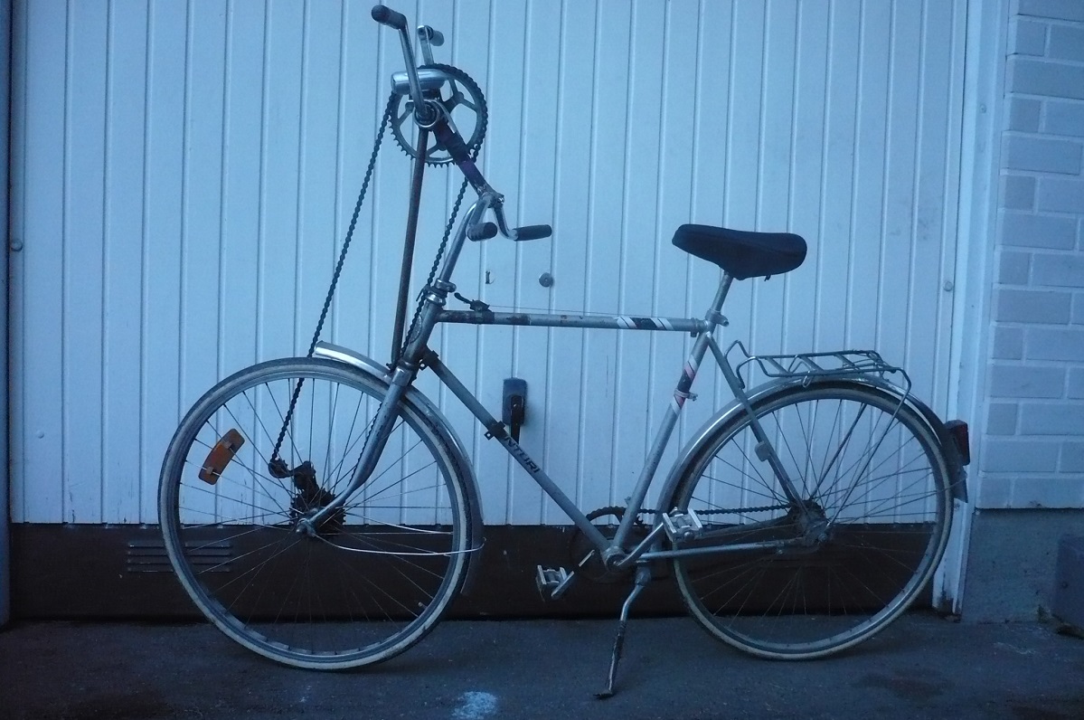 Terveks. Tuossa pitäisi olla kuva oravanpyörästä. Voisin varmaan patentoida härvelin nimen, mutta sitten täytyisi maksaa krediittejä Jorille, joka pyörän hyvät ylämäkiominaisuudet havaittuaan nimitteli minua oravaksi. Siitä siis laitteen nimi. Jenkeissä näytti joskus toimineen Ultrabike-niminen pulju, joka valmisti lähes samanlaisia pyöriä.