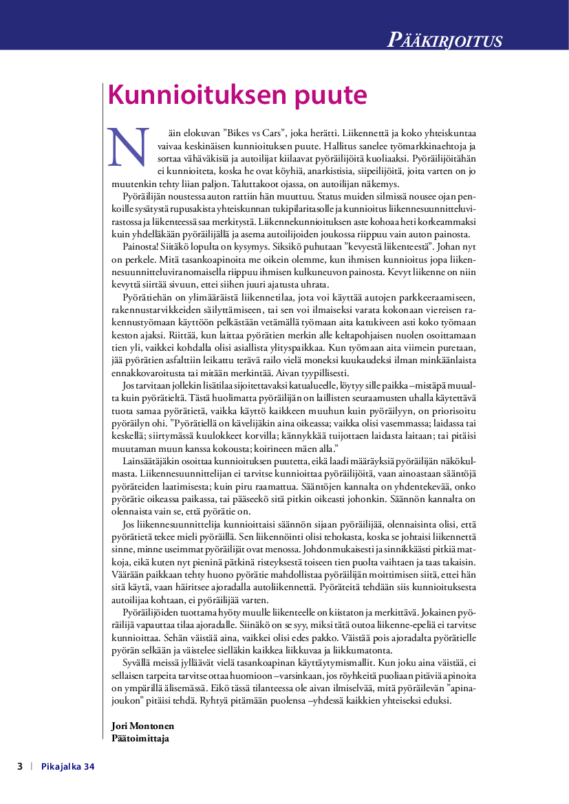 Kirjoitin uuteen Pikajalka lehteen pääkirjoituksen, joka ottaa kantaa liikennesuunnitteluun ja pyöräteiden ongelmiin. Panen sen tähän liitteeksi niille, jotka eivät vielä ole Vanhat Velot Ry:n jäseniä, jotka saavat neljä hienoa lehteä vuodessa 20€ vuosijäsenmaksua vastaan. Vanhojen Velojen jäseneksi pääsee laittamalla minulle yhteystiedot YV viestinä. Tarvitaan siis nimi, postiosoite, s-postiosoite ja puhelinnumero.