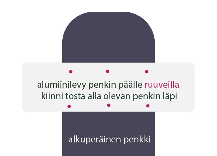 Eiks sen voi tehdä tolleen kätevästi että ruuvaa vanhan penkin läpi tommoisen oikeen kokoisen alumiinilevyn kiinni? EI tarvi kuin hankkia mittan tehty levy ja tuikata se kiinni? Niin. Ruuvi siis voi olla myös pultti jossa toisessa päässä mutteri. Sori huonoa termiä.