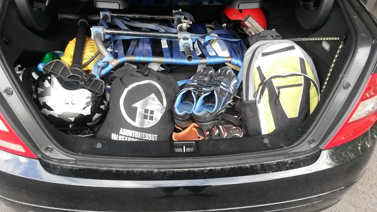 Hyvältä näyttää! Itse olen myös ollut reissun päällä jo useamman päivän - viime viikon pejantantaista saakka, tänään aamulla rantauduin jo Suomen tasavallan alueelle. Auto täynnä kaikenlaista materiaa, mutta silti kävin tänään Biltemasta hakemassa kumisaappaat kisaviikonlopuksi :| .