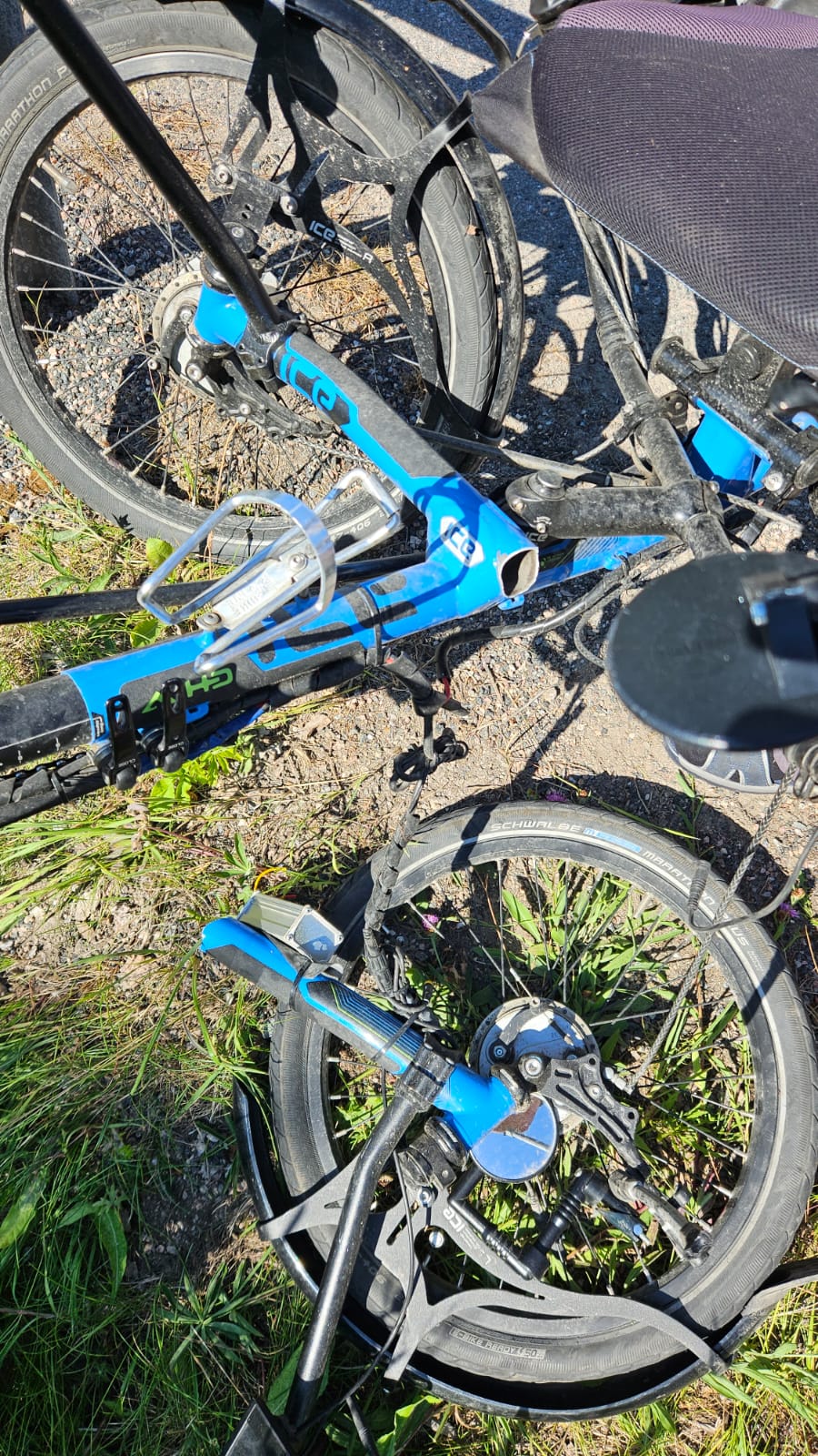 Heinäkuussa Espoossa nojakkikuski joutuin väistämään "puskista tulleita pyöräilijöitä" kevyen liikenteen väylällä ja törmäsi kuvassa olevaan aitaan, alamäessä ja aika kovalla vauhdilla. Nojakin vasen etupyörä irtosi kokonaan rungosta ja kuski lensi maahan sillä seurauksella, että lonkka murtui useammasta kohdasta. Kuukausien toipuminen edessä. Kyseessä oli vielä ICE:n HD eli heavy duty -versio. Tuli vaan mieleen, että olisiko nelipyöräisellä selvitty vähemmällä?