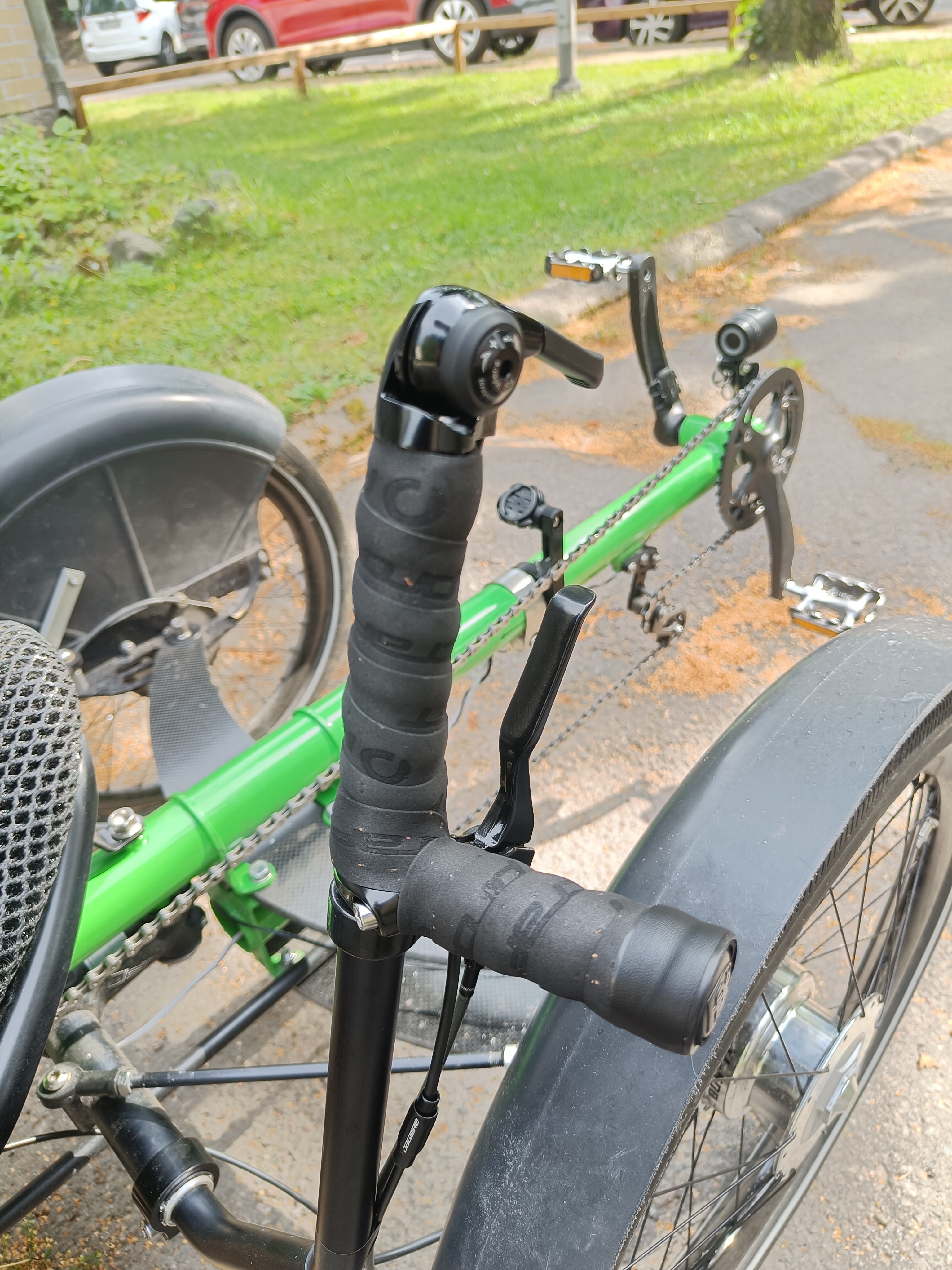 Mun järkeen ei mene tuo polkemisen vaikutus tuolle ketjun löysälle puolelle. Ainahan generaattoria vedetään taka-akaselin suunnasta suhteellisen löysällä ketjulla. Väliakselin ja genun välinen ketju taas luulisi olevan vakiokireydellä aina.
