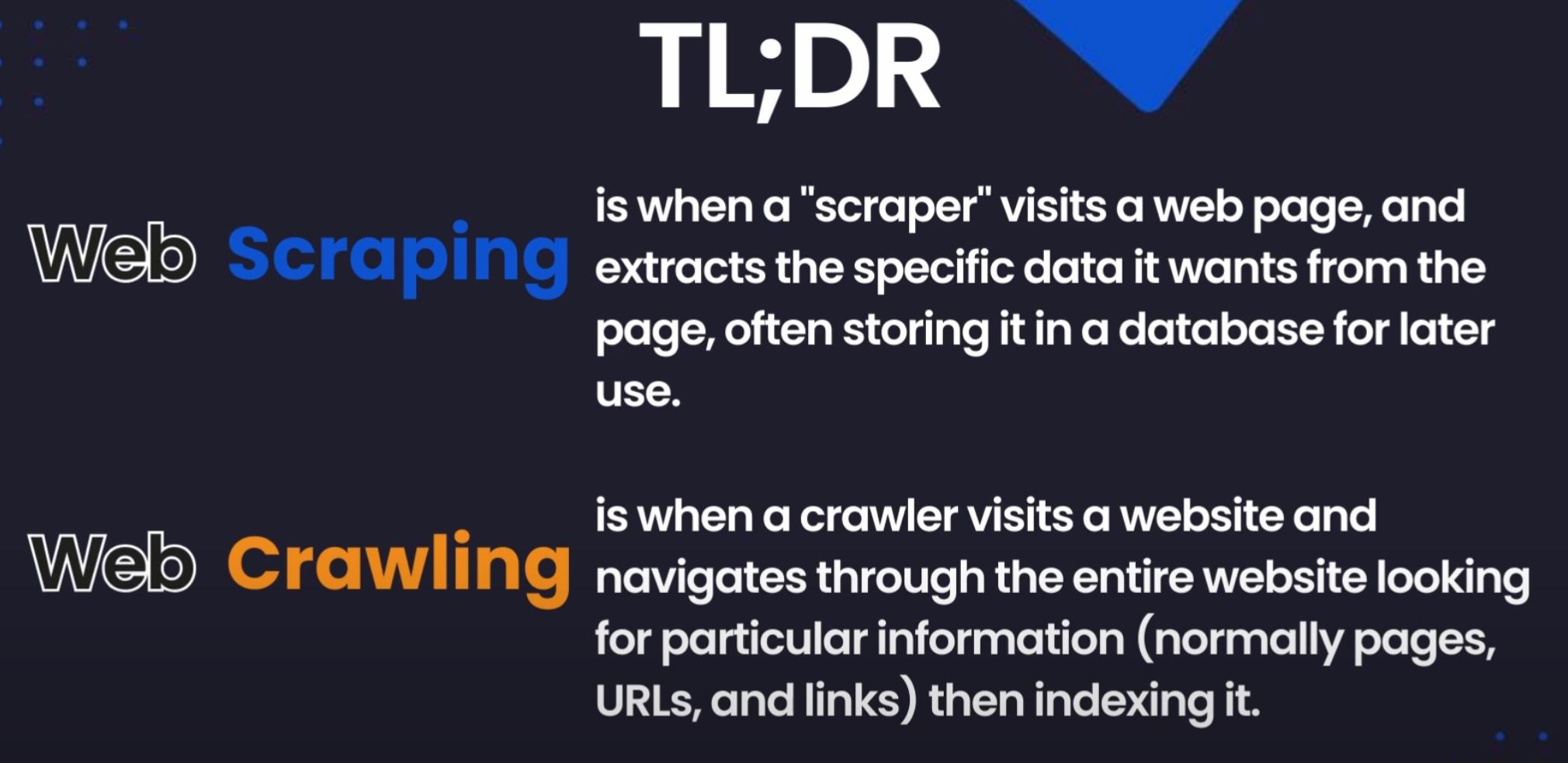 Jäin pohtimaan, että eroa on myös kaistan ja tehontarpeessa. Otetaan asunto esimerkiksi. Muutamat Crawlerit käyvät vain katsomassa oven postilaatikosta nimen, sijainnin ja ehkä sen oven värin. Silloin tällöin. Kun taas sadat Scraperit tunkevat sisään ovista, ikkunoista ja postiluukusta ja koluavat koko asunnon, jotta siitä saadaan kaikki hyöty irti. Varmuuden vuoksi vielä moneen kertaan ja jatkuvasti. Aiheuttaen sen, että asukas ei itse pääse aina halutessaan sisään.
