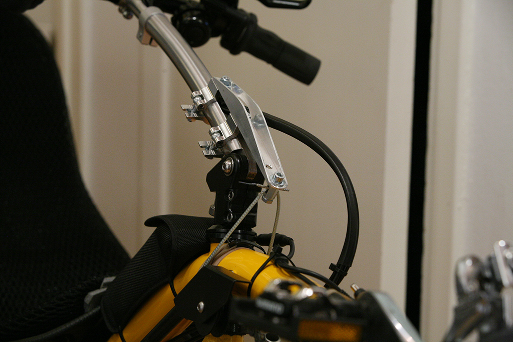 Joo clampit on thomannilta. Kokeilin aluksi kumilenkin sijaan vulkanoituvaa teippiä ja se aiheutti jonkun verran takeltelua, johtuen tietenkin siitä että teipin pinta on tosi "nihkeä". Kumilenkkiviritys, ja mieluummin ohut sellainen, on toistaiseksi paras tuntumaltaan. Kokeilen varmaan vielä kumista liukuesteteippiä. Kaiken kaikkiaan vaijerin paksuudella ja jäykkyydellä (kuinka hyvin vaijerilenkki pyrkii säilyttämään ympyrämuotonsa) sekä joustavan pinnan ominaisuuksilla voi tuntumaa tuunata. Vaijeri/kumi-juttu ei varmaankaan ole ollenkaan paras kombinaatio, uskon että muilla toteutuksilla ja evoluutiolla olisi sijansa tässä. Pointti on se, että perusidea, eli että sopivalla joustolla ja vipusuhteella ankkuroidaan ohjausliike pyörän runkoon, toimii. Itse asiassa kovemmassa menossa hyvinkin jäykkä ohjaus tuntuu mukavalta, kunhan siinä ei vain ole kitkaa. Toki tämä on varmasti naamakohtaista mutta itse kyllä tykkään. Jää pois se fiilis että ohjaus on jotenkin "säikky" ja on helpompi ajaa yhdellä kädellä ja vaikka kaivaa nenää koska ohjaustankoon voi hieman tukeakin sivusuunnassa. Jori esitti hyvän luonnehdinnan kuskin sivuttaisesta ja luontaisesta epävakaudesta, jota jäykennetty ohjaus tuntuu sietävän paremmin. Tietenkään se ei sitä kokonaan poista. Suurin haaste tuossa systeemissä on saada vaimennus toimimaan progressiivisesti ja vielä niin, että koko säätöalue sijoittuu mahdollisimman lyhyelle alueelle stemmin liikkeen alapäässä. Ideaaliratkaisu tuntumaltaan olisi ehkä voima-anturi stemmissä ja joku sähköinen/hydraulinen elin säätämässä vaimennusta mutta pieni ääni pääkakkarassa sanoo että tämmöisissä jutuissa yksinkertaisuus on turvallisuutta.