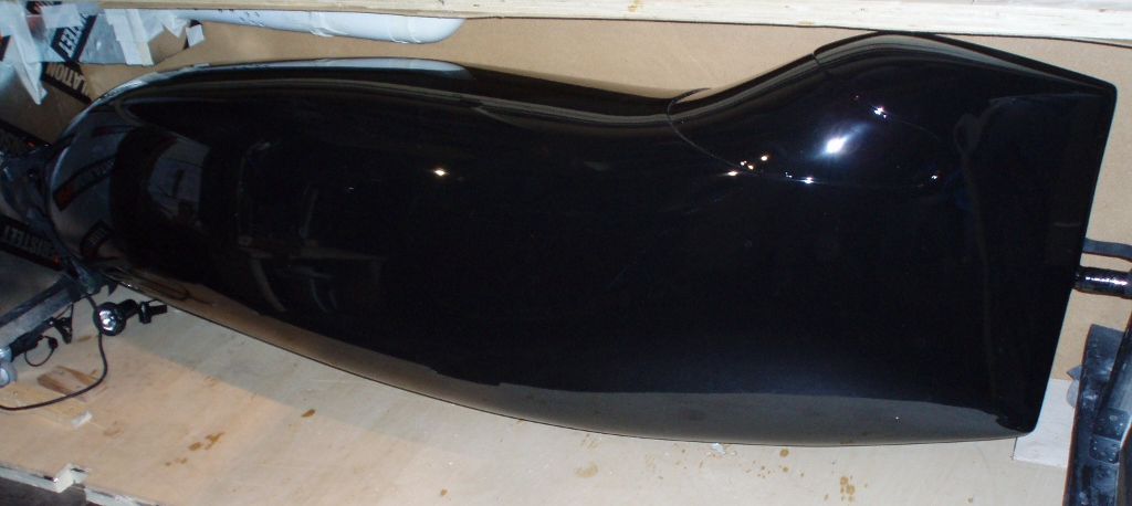 hiottu on.... kiiltää koska viimeinen pinta on taitavan automaalarin ruiskulla vetämämä. tämä on se urosmuotti josta valetaan naarasmuotti, jonka sisään sitten varsinainen koppa laminoidaan. Muotin pinta on siis sama kuin kopan pinta.