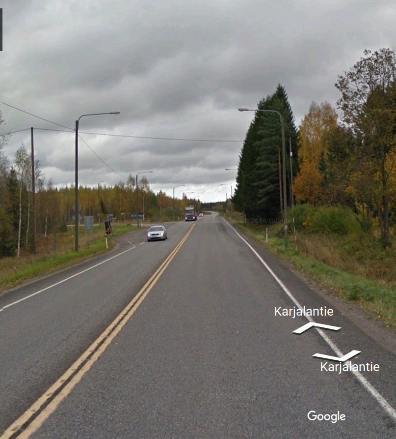 Ps. en oo aivan varma onko risteys juuri tuon näköinen tänä päivänä mutt kääntyvää kaistaa miusta siinä ei ole.
