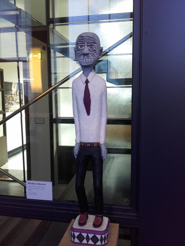HerraIsoHerra tehtaanjohtapatruuna Mänttässä on ollut suuri käsitöiden ystävä, ja joku taiteilija käsitöitä hänen konttuurissaan oli tehnyt ikuistamalla paperintekoprosessin kaappeihin ja työpöydän laatikostoihin. Muuten en osaa ottaa kantaa kuin, että aika hienoa työtä mutta miksi prosessin alkuvaiheissa tukki pitää kaataa jätkän päälle?