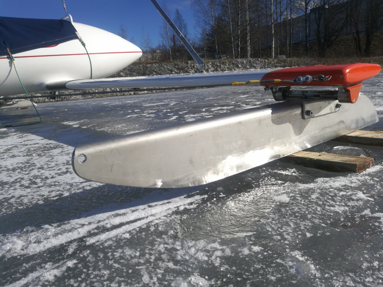Etuluistimen emäputken vois hitsata putkiklemmarin kylkeen, sen etäisyyttä vois sitten säädellä kunnes löytyy ihanne paikka. Samoin maston jalka putkiklemmarilla liikuteltava, saattaa olla, ett Punakettuun tekemäni sopis Optarin mastolle. Jos haluu vaihtaa takilaa, voi tehdä sille sopivan jalan.