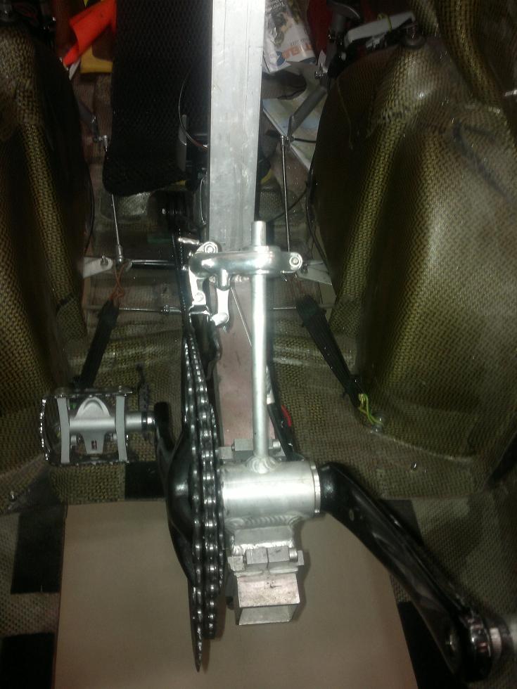 Klappia en löytänyt muualta kuin ristikkonivelen ja ohjain putken liittymä kohdasta. Jonkun näköinen kuusiokolo ruuvi pitää tuon paikallaan. Täytyy tutkia tuota huomenna. Nyt täytyy mennå harjoittelemaan kolmipyöräisellä ajoa ![]()