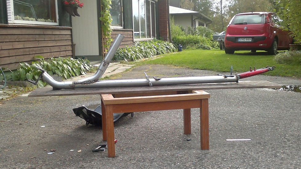 Semmoisia tikkumallisia tukia en halua kun ne minun mielestä tulee tavaratilan tielle tai sitten pyörästä pitäisi tehdä vielä pitempi. Työpaikan jätelavalla kolusin, 2mm seinämällä olisi ollut jotain vähän ohkasempia putkia ja ohuempaa neliörautaakin mutta sinne jäi... jos olisi parempi etukäteissuunnitelma niin kait kesänmittaan jätelavoilta oikean paksuiset raudat olisi löytänyt mutta eipä näissäkään vararikkoa tee