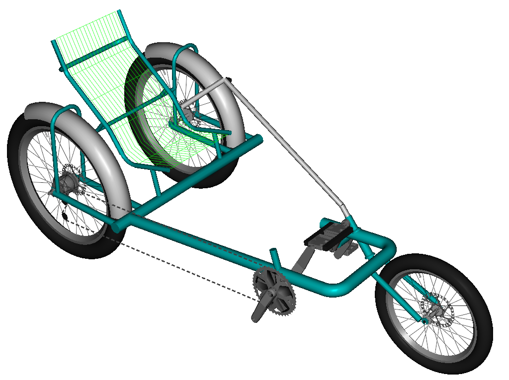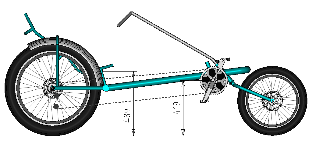 Pari kehityskohdetta: Ohjaustangon liikevara näyttää pieneltä, jolloin kääntöympyrä jää isoksi. Takarunko näyttää painavalta kun poikkiputki tulee pitkälle eteen. Penkille ja ohjaustangolle voisi olla vain pituussuuntainen tökö, joka ei rajoittaisi tangon liikevaraa.