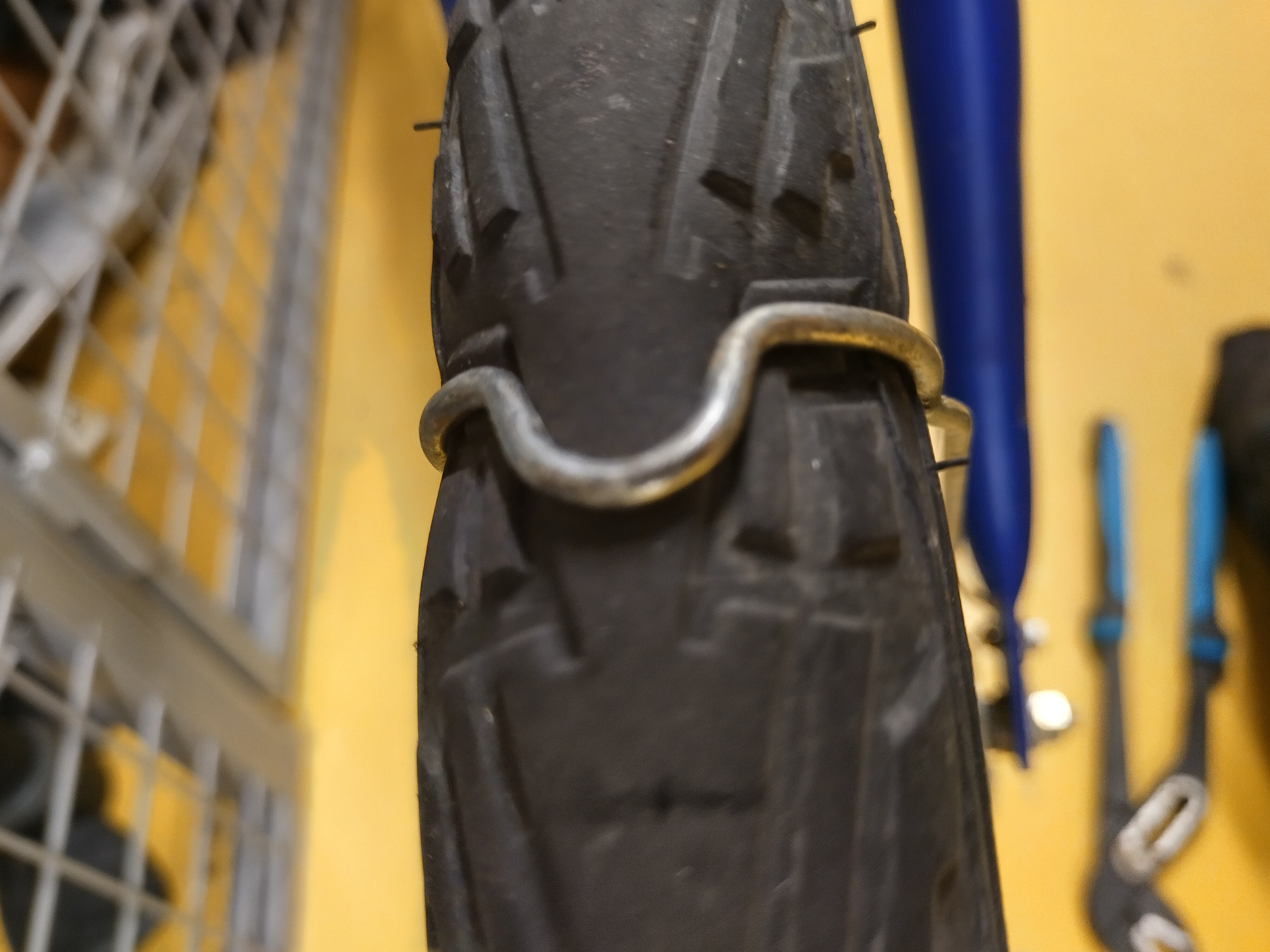 Pitäskö tuon lokasuoja kiinnikkeen joka on renkaan keskellä tai haarukassa kiinni, pään olla kohtisuorassa pidikkeen jatkeena ja sitten lokarin reiän läpi? Eli onko se taipunut ja pitää vääntää takaisin suoraksi?