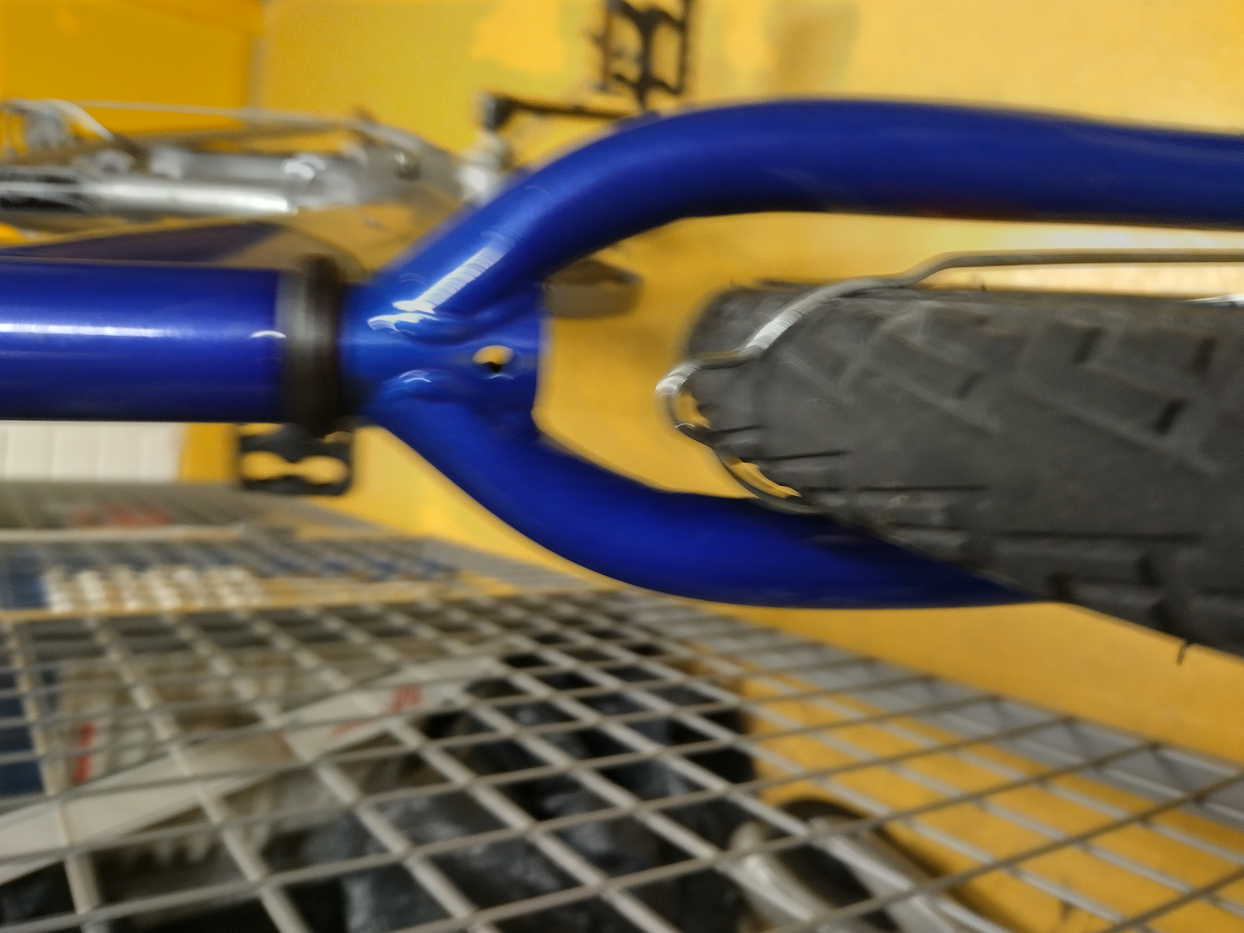 Lokasuoja on yleensä kiinni kahdesta kohtaa, lokarilangassa ja haarukassa. Haarukassa reikä, jossa lokari ollut kiinni.