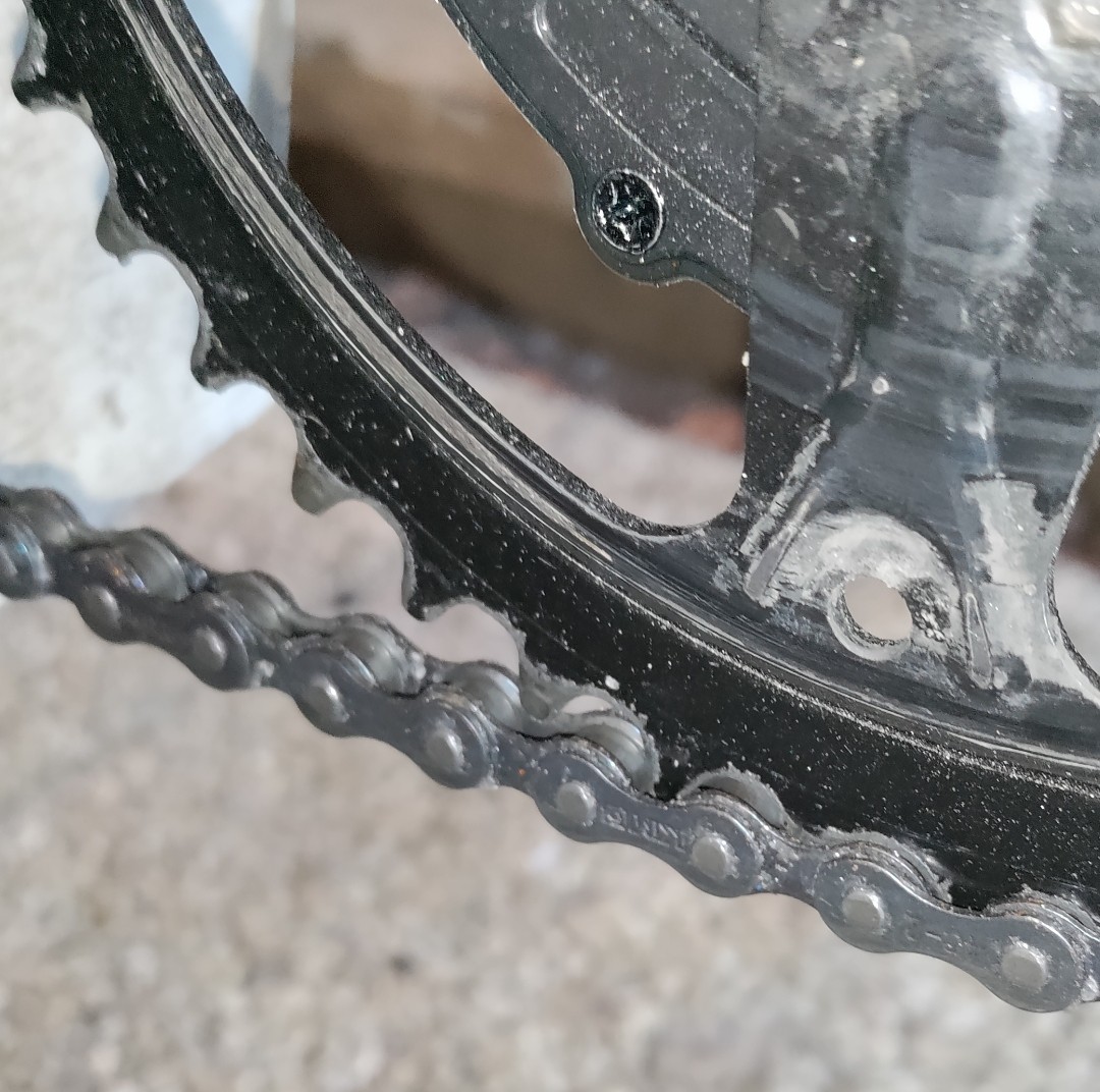 Vaan eipä nämäkään lokarit suojaa riittävän hyvin. Suolavesi tekee pahaa jälkeä. Vahaan ketjut noin tonnin välein, kun ne alkavat pitämään kuivaa ääntä. Hihnaveto olisi huoltovapaampi.