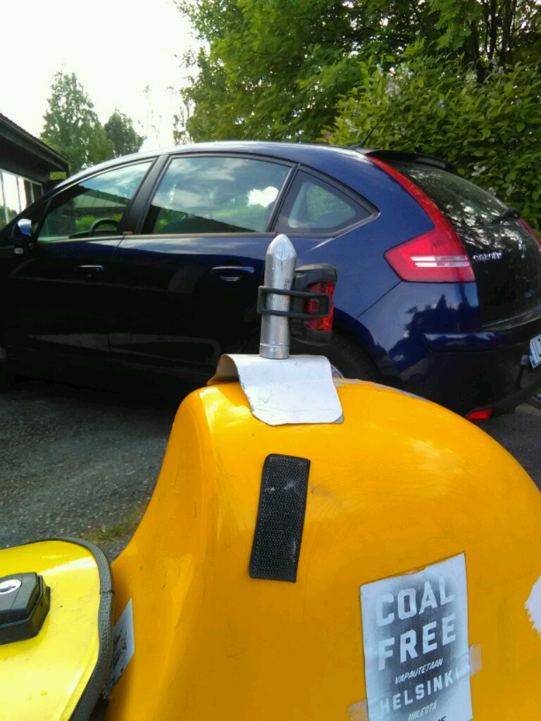 pakkausteipillä kiinni ja menoksi. Hyödyn testaus jää huomiselle kun nyt oli ylämäkitaival. Kuidutettava versio odottaa aikaa parempaa...